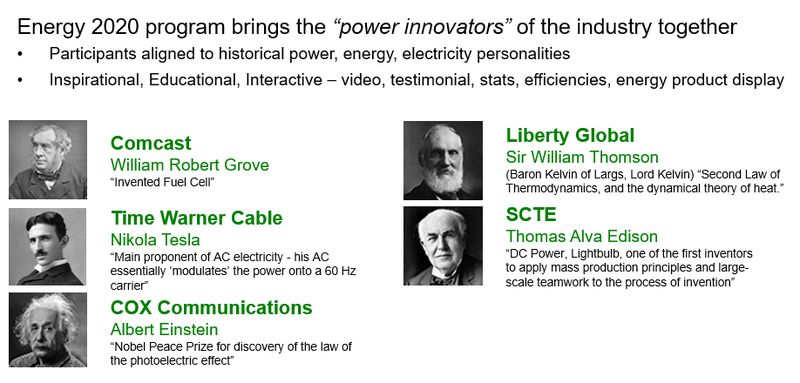 - The Cable’s Power Innovators Exhibit showcased specific operator-vendor milestones in reducing energy cost and consumption. The exhibit featured case studies from Comcast, Time Warner Cable, Cox, Liberty Global and SCTE. View Press Release | View Article