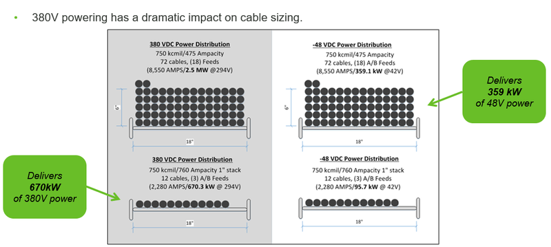 DC powering for critical facilities is an opportunity for energy savings. By reducing the conversion factor and migrating to higher voltages such as 380 volts infrastructure costs as well as power savings be realized.