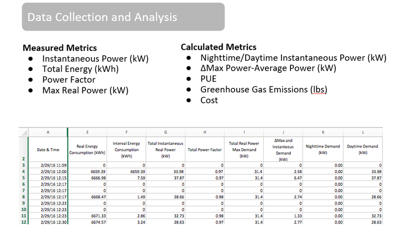 A spreadsheet was constructed to help analyze critical facility power to identify areas of energy opportunity.